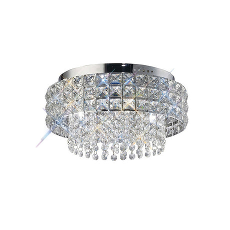 Edison 9 Light Crystal Flush Ceiling Light - Polished Chrome
