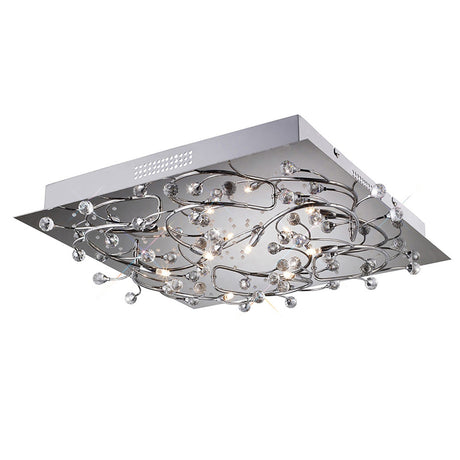 Fia 6 Light Square Crystal Flush Ceiling Light - Polished Chrome