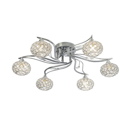 Leimo 6 Light Crystal Semi-Flush Ceiling Light - Polished Chrome