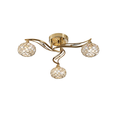 Leimo 3 Light Crystal Semi-Flush Ceiling Light - French Gold