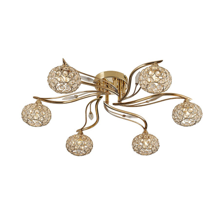Leimo 6 Light Crystal Semi-Flush Ceiling Light - French Gold