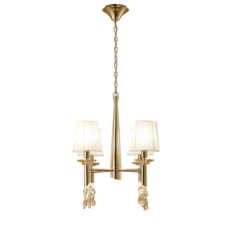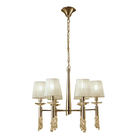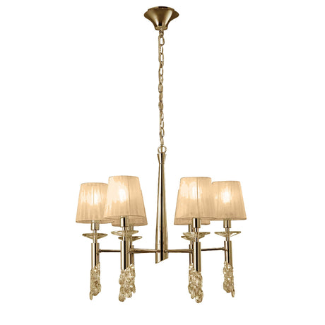 Tiffany 8 Light Crystal Chandelier - Brass With White Shades