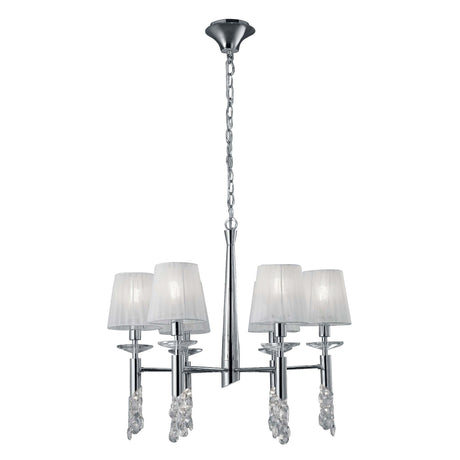 Tiffany 8 Light Crystal Chandelier - Chrome With White Shades