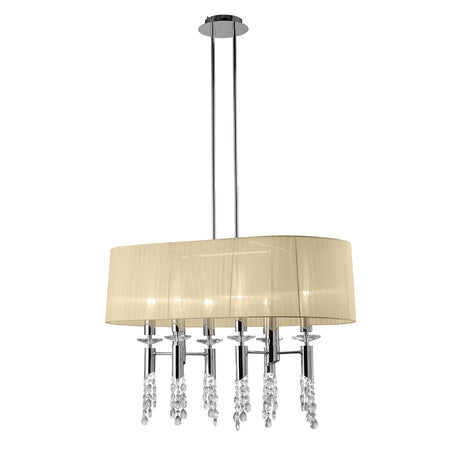 Tiffany Oval 8 Light Crystal Chandelier - Chrome With Cream Shade