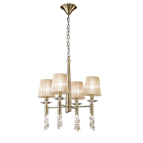 Tiffany 8 Light Crystal Chandelier - Brass With Cream Shades