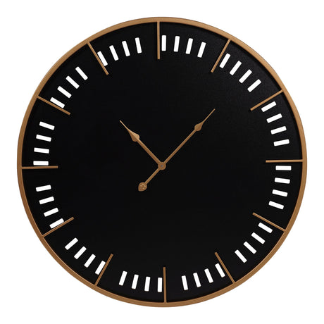 Iron Dial & Wooden Frame Wall Clock 50cm - Black & Brass