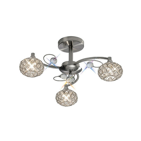 Cara 3 Light Crystal Semi-Flush Ceiling Light - Satin Nickel