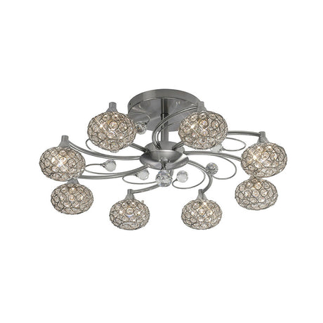 Cara 8 Light Crystal Semi-Flush Ceiling Light - Satin Nickel
