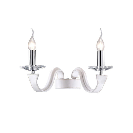Nardini 2 Light Crystal Wall Light - Chrome With White Leather