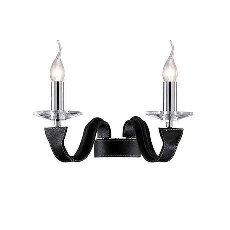Nardini 2 Light Crystal Wall Light - Chrome With Black Leather