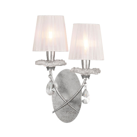 Tiffany 2 Light Crystal Wall Light - Chrome With White Shade