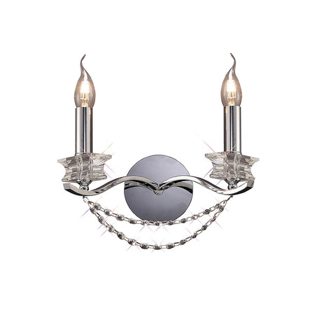 - £8299£9850Unit price /UnavailableOlivia 2 Light Crystal Wall Light With Switch - Chrome With Cream Shade Free Delivery