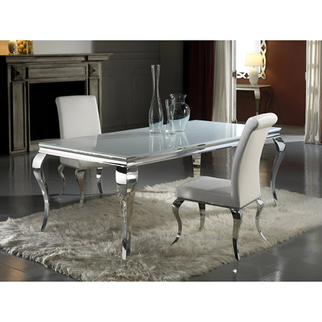 £1,40999Unit price /UnavailableBarroque 6 Seater Glass & Stainless Steel Small Dining Table – Silver
