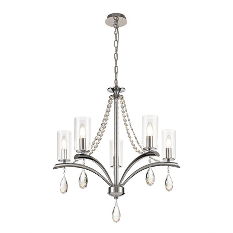 Rhea 64cm 5 Light Crystal & Glass Chandelier - Polished Chrome