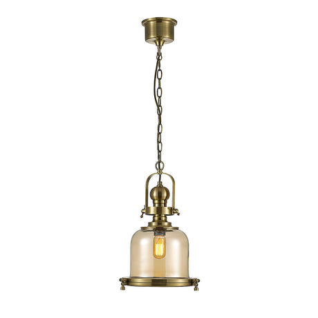 Riley 31cm Small Bell 1 Light Pendant Light - Antique Brass & Cognac