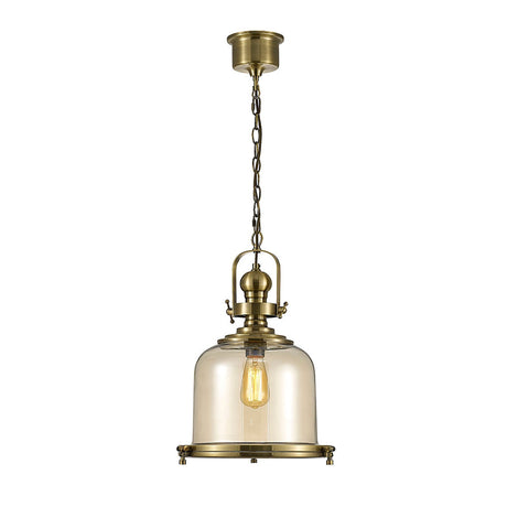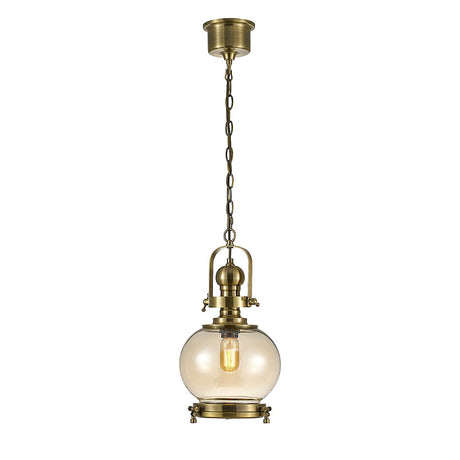 Riley 24cm Small Ball 1 Light Pendant Light - Antique Brass & Cognac