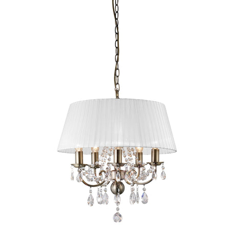 Olivia 50cm 5 Light Crystal Chandelier - Brass With White Shade