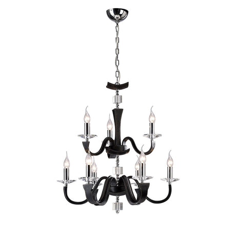 Nardini 2 Tier 9 Light Crystal Chandelier - Chrome & Black Faux Leather