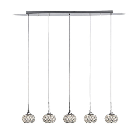 Chelsie 5 Light Beaded Glass Bar Pendant Light - Polished Chrome