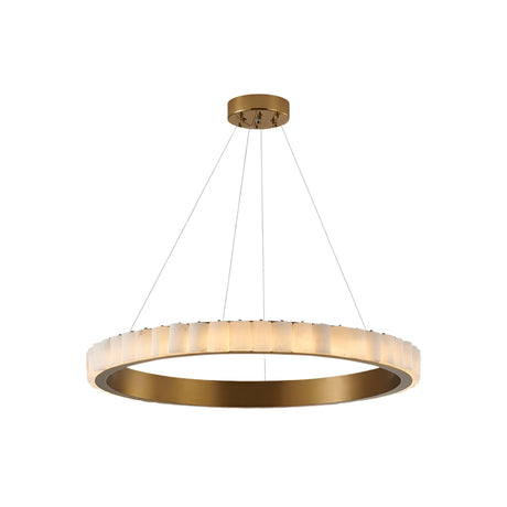 Lucenza LED Halo Ring Alabaster Chandelier – Brushed Brass & Soft White