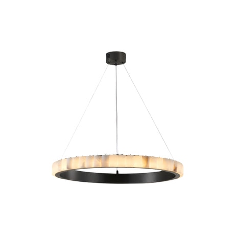Lucenza LED Halo Ring Alabaster Chandelier – Matte Black & Soft White