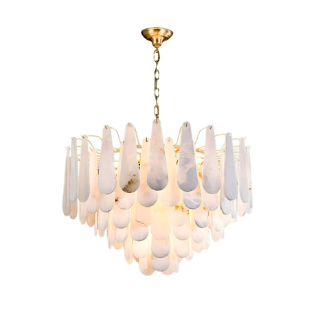 Elvaris LED 3 Tier Radial Alabaster Chandelier – Brushed Brass & Soft White