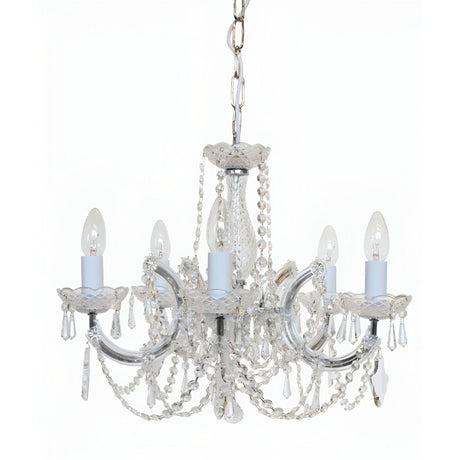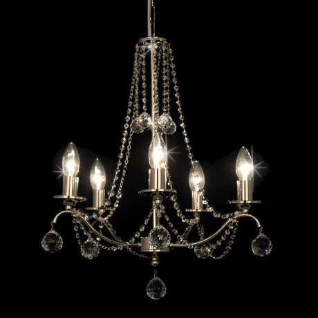 Queenlight 5 Light Armed Glass & Czech Republic Crystal Chandelier - Chrome