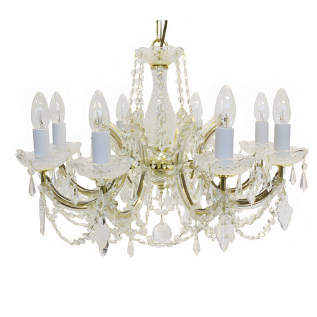 Queenlight 8 Light Armed Glass & Czech Republic Crystal Chandelier - Gold