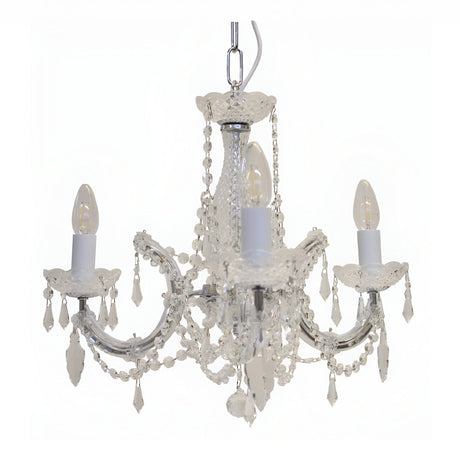 Queenlight 3 Light Armed Glass & Czech Republic Crystal Chandelier - Chrome