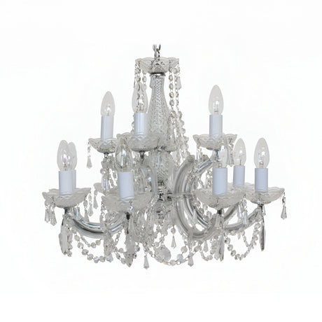 Queenlight 12 Light Armed Glass & Czech Republic Crystal Chandelier - Chrome