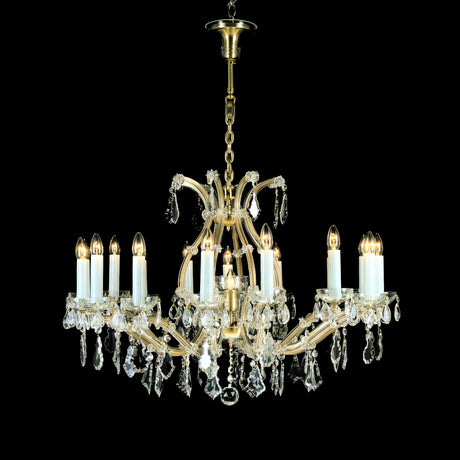Louven 12 Light Hand Cut Crystal Chandelier - Polished Brass