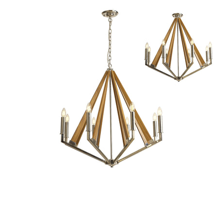 Hilton 81cm Octagonal 8 Light Wood Chandelier - Nickel & Taupe