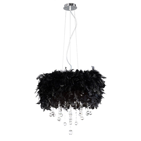 Ibis 35cm 3 Light Crystal Chandelier - Chrome With Black Feather Shade