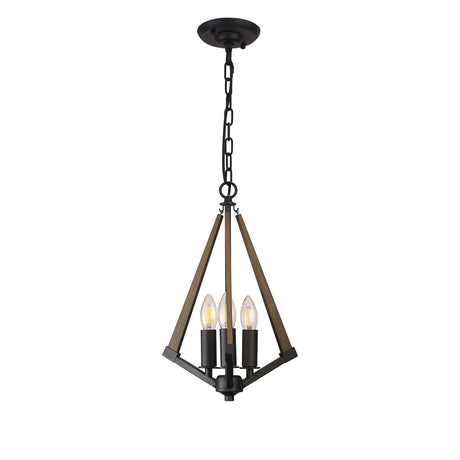 Hilton 30cm Tetragonal 3 Light Wood Chandelier - Black & Dark Grey