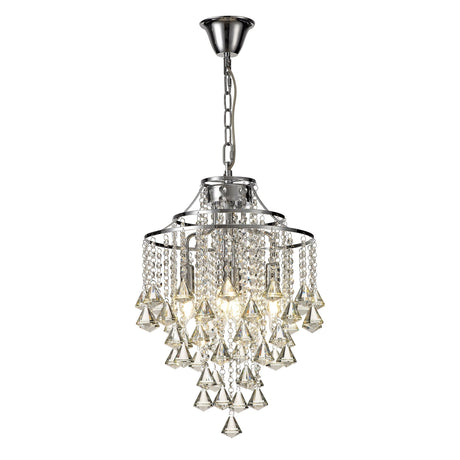 Ibis 35cm 3 Light Crystal Chandelier - Chrome With White Feather Shade