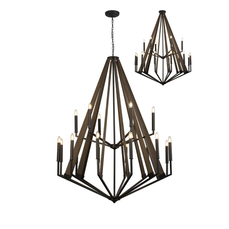 Hilton 121cm 2 Tier 18 Light Wood Chandelier - Black & Dark Grey