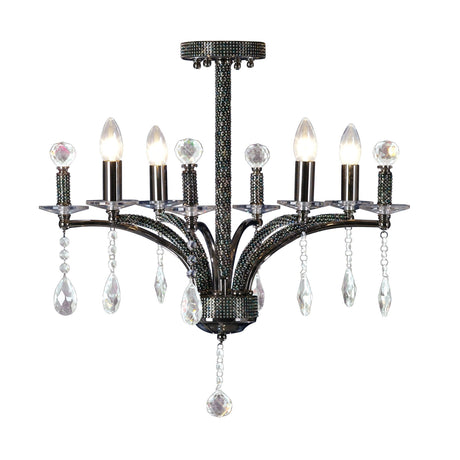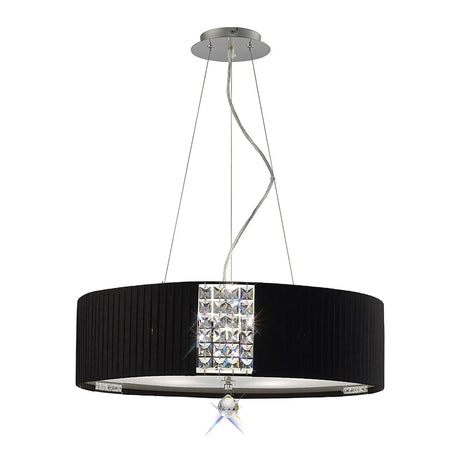 Evelyn 60cm 5 Light Crystal Suspension Light/Semi-Flush - Chrome With Black Shade