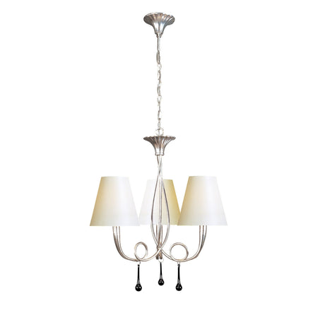 Paola 64cm 3 Arm 6 Light Chandelier - Silver With Cream Shades