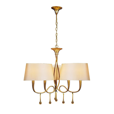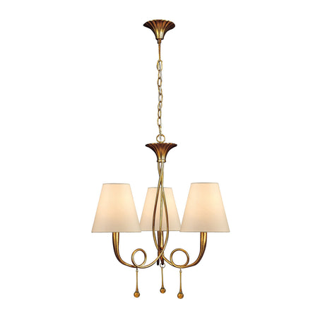 Paola 64cm 3 Arm 6 Light Chandelier - Gold With Cream Shades