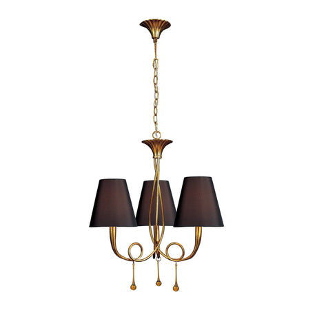 Paola 64cm 3 Arm 6 Light Chandelier - Gold With Black Shades