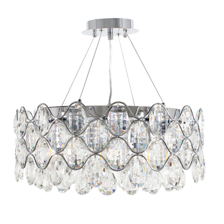 Delya 6 Light Glass & Crystal Beads Suspension Light - Chrome