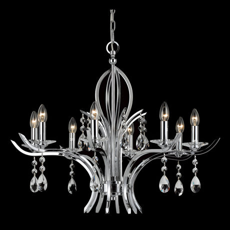 Queenlight 8 Light Armed Glass & Czech Republic Crystal Chandelier - Chrome