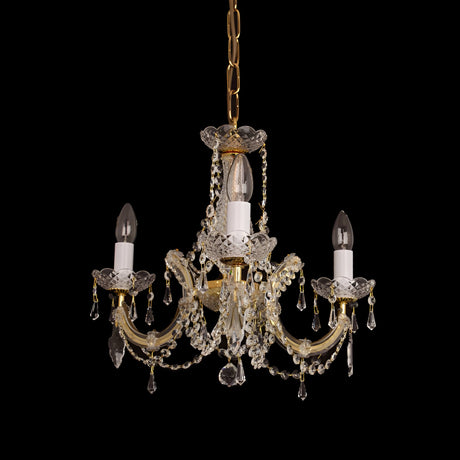 Queenlight 3 Light Armed Glass & Czech Republic Crystal Chandelier - Gold