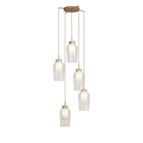 Nora 5 Light Frosted Glass Cluster Pendant Light - Gold & White
