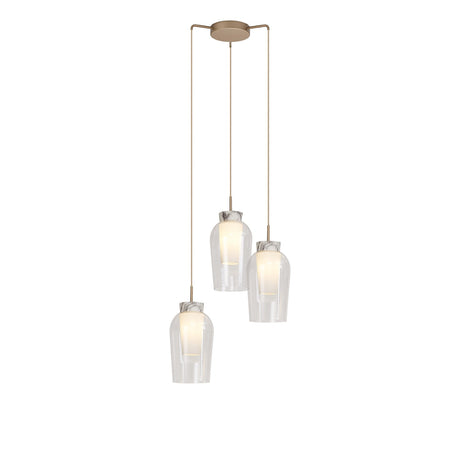 Nora 3 Light Frosted Glass Cluster Pendant Light - Gold & White
