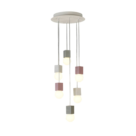 Galaxia 6 Light Square Cement Cluster Pendant Light - Multicoloured