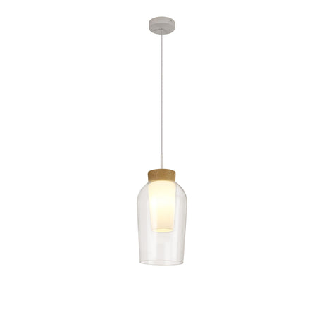 Nordica 20cm 1 Light Pendant Light - White & Beech With Ivory Shade