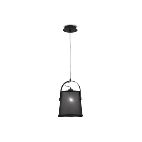 Nordica 1 Light Pendant Light - Black & Beech With Black Shade