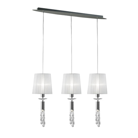 Tiffany 6 Light Crystal Bar Pendant Light - Chrome With White Shades