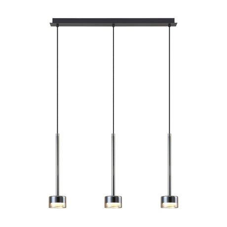 Tonic 3 Light Dimmable LED Glass Bar Pendant Light 3000K - Chrome & Black